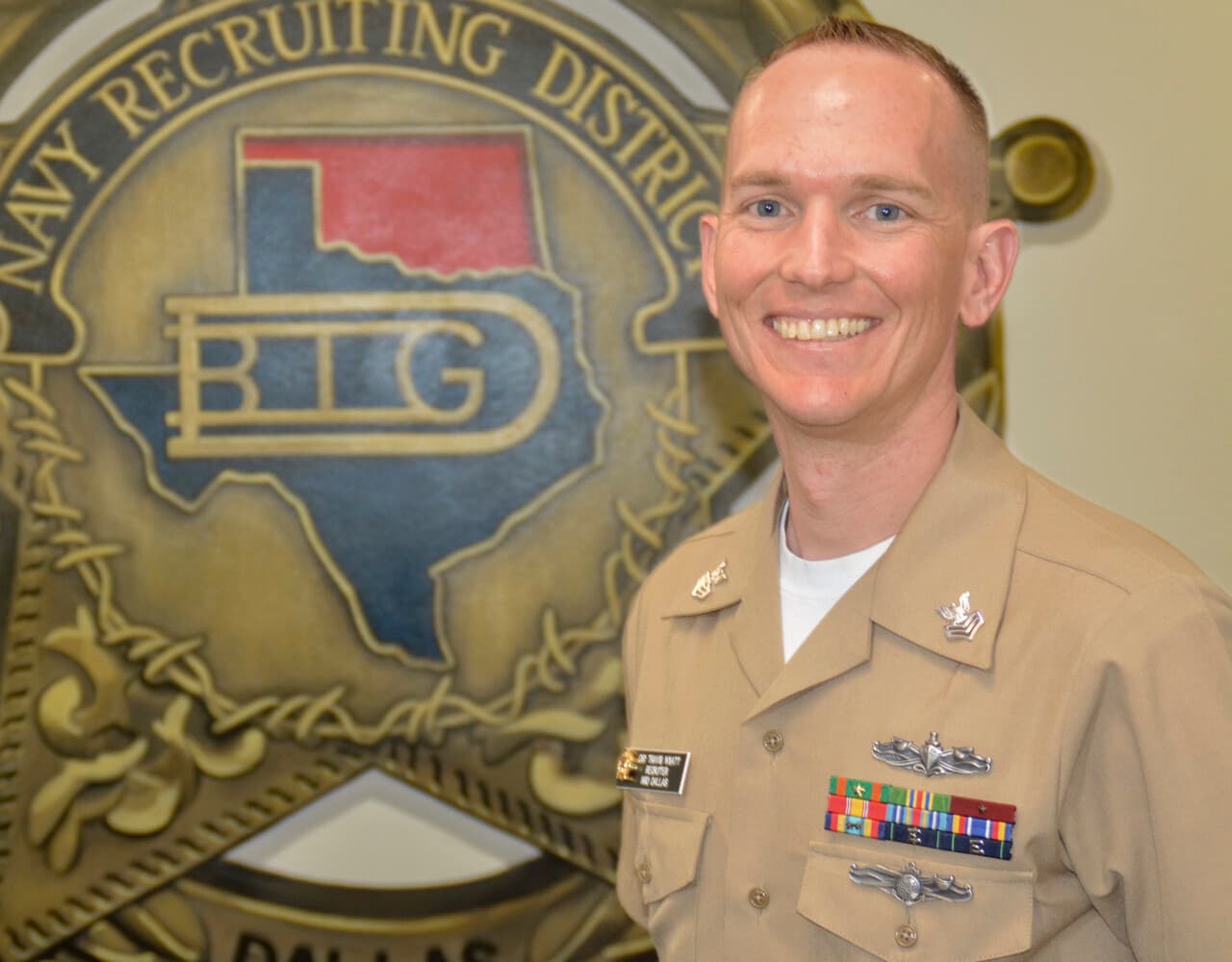 “I chose the Navy because I wanted to serve in the same branch as my grandfathers and uncles. In October 2009, I went to Navy Bootcamp in Great Lakes, IL.” Throughout his time in service, Travis earned numerous awards for his deployments and work as a Navy recruiter.